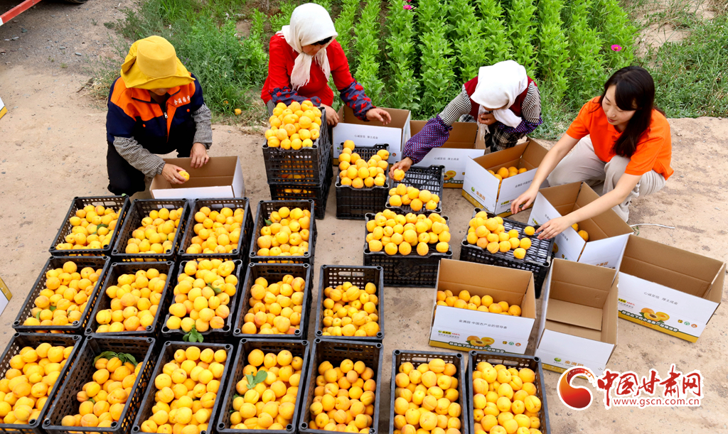 連日來(lái),張掖市甘州區(qū)石崗墩灘一專(zhuān)業(yè)合作社種植的杏梅進(jìn)入成熟采摘期,工作人員正在緊張忙碌地采摘、分揀、包裝,運(yùn)送到客戶(hù)手中。