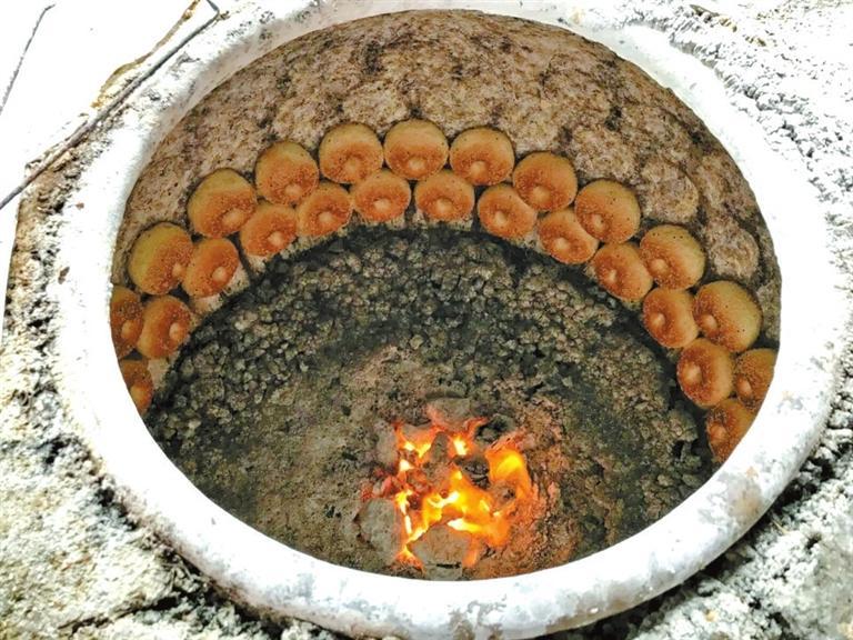 清朝志書提到在新疆,人們“以餅為常食,大徑尺余。用土塊砌一深窟,內(nèi)用細泥抹光,將窟燒紅,餅擦鹽水,貼在窟內(nèi),頃刻而熟。貧者惟食此,飲冷水而已。富者用糖油和面,煎烙為餅,亦有小如象棋子大者”。