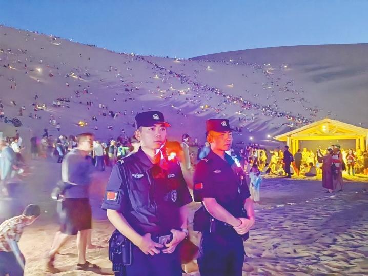為了打造“安全游”環(huán)境,讓游客“放心游”,敦煌市公安局在各景區(qū)的關鍵點位,安排30余名增援警力加密巡邏頻次,擴大巡邏范圍,全力維護景區(qū)秩序,織密治安“防控網(wǎng)”,筑牢平安“防火墻”,有效提高見警率、管事率,提升警務服務保障水平。