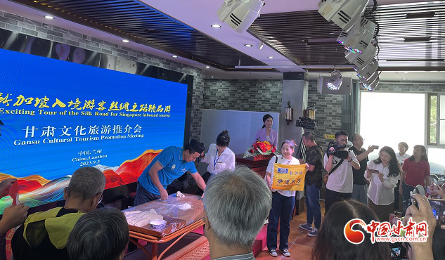 推介會上,播放了“交響絲路·如意甘肅”文化旅游形象宣傳片。甘肅文化和旅游推介大使王建萍向新加坡賓客詳細介紹了甘肅多元且極富特色的文化旅游資源,深深地激發(fā)了他們對甘肅的向往與喜愛之情。蘭州拉面師傅為大家現(xiàn)場表演了特色非遺美食“蘭州牛肉面”,精彩的表演引得現(xiàn)場不時爆發(fā)出陣陣掌聲。期間,新加坡南方藝術(shù)研究會合唱團還進行了合唱表演。