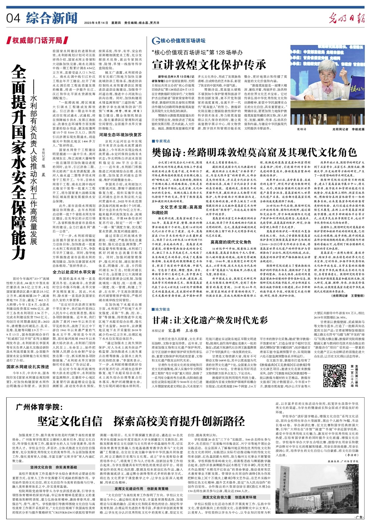 新華社蘭州9月13日電(記者 張智敏)由中宣部宣教局、光明日?qǐng)?bào)社共同主辦的“核心價(jià)值觀百場(chǎng)講壇”第128場(chǎng)活動(dòng)9月13日在甘肅敦煌研究院舉行。“文物保護(hù)杰出貢獻(xiàn)者”國家榮譽(yù)稱號(hào)獲得者、敦煌研究院名譽(yù)院長樊錦詩作題為《絲路明珠敦煌莫高窟及其現(xiàn)代文化角色》的演講。