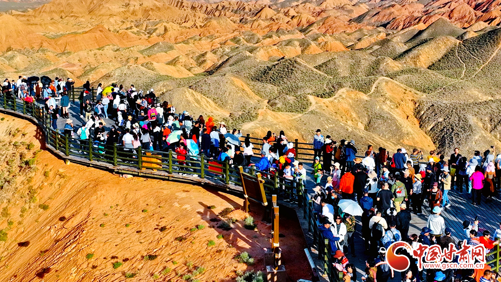 9月30日,甘肅張掖七彩丹霞景區(qū)內(nèi)人頭攢動,全國各地的游客紛至沓來,欣賞獨特的丹霞地貌,領(lǐng)略西北壯美景色。