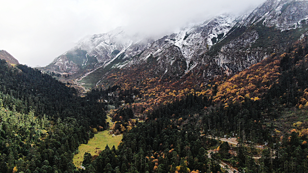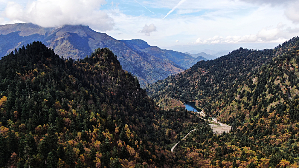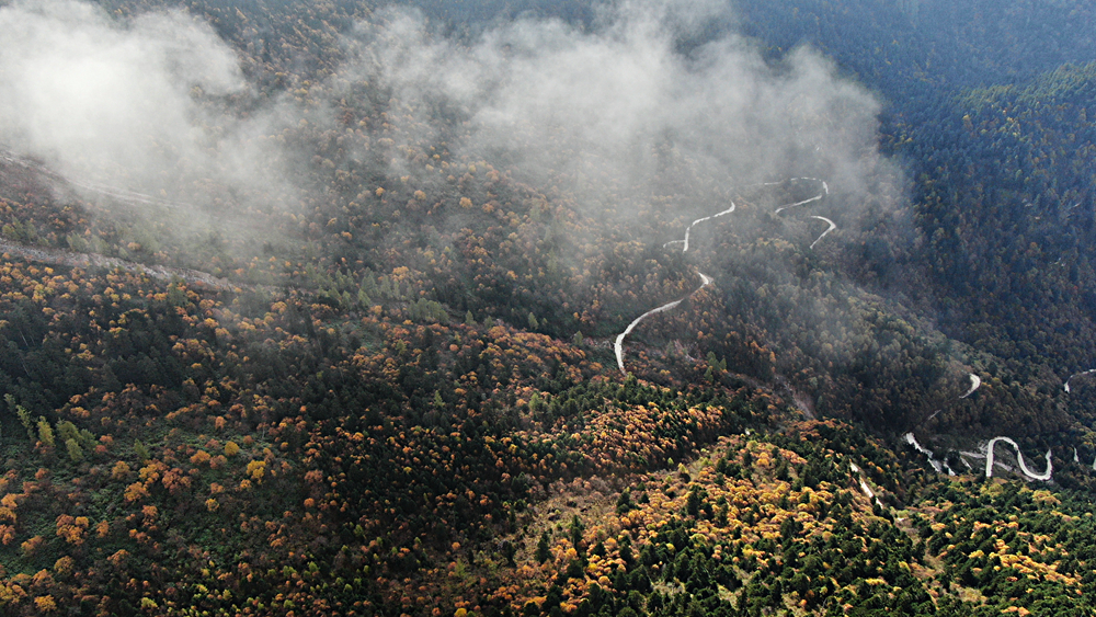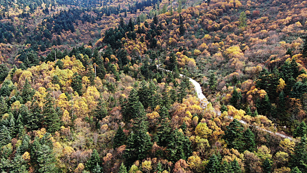 金秋時(shí)節(jié),甘肅省隴南市宕昌縣官鵝溝森林公園層林盡染,斑斕如畫(huà),吸引了不少游客前來(lái)游玩。新華網(wǎng)發(fā)(劉輝 攝)