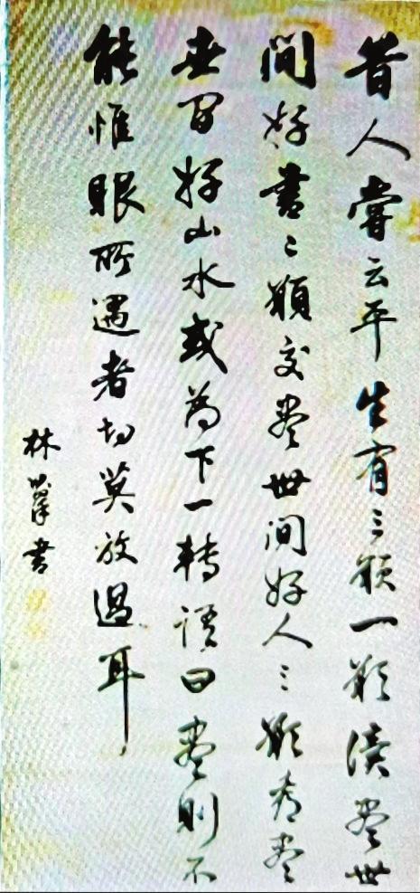 今人評(píng)價(jià)林則徐書(shū)法曰:“其書(shū)法宗歐而上溯王羲之,但不拘泥,自成一格。清勁秀博之風(fēng),絕無(wú)矯揉造作,柔中含剛,寬博疏朗,一如人品,筆力犀利,剛勁之中帶秀氣,給人以浩然正氣、剛毅正直之感。”無(wú)怪乎當(dāng)年甘肅政學(xué)兩界熱捧其書(shū)法作品,以至一字難求;當(dāng)然,林則徐也以不眠不休的敬業(yè)精神,在金城留下了一段佳話。