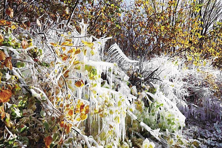 連日來(lái),隨著我省河西地區(qū)氣溫驟降,張掖蘆水灣旅游度假區(qū)的各種植物上掛滿了晶瑩剔透的冰掛,玉樹(shù)瓊枝,美不勝收,成為深秋景區(qū)獨(dú)特的風(fēng)景。