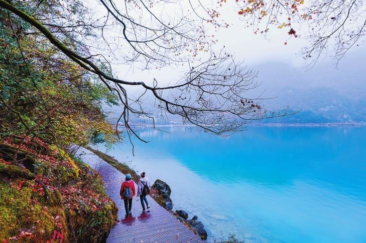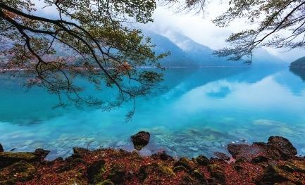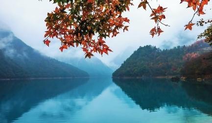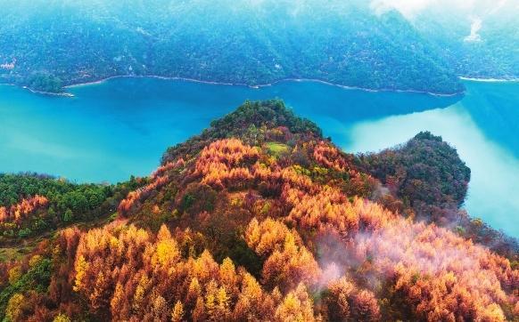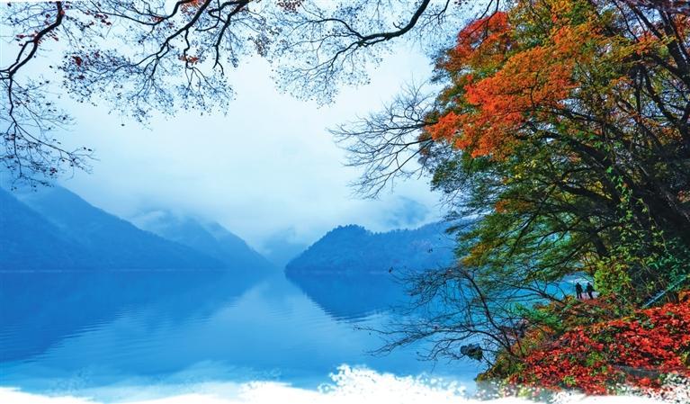 初冬時(shí)節(jié),文縣天池國家森林公園尚未褪去秋裝。遠(yuǎn)山峰巒疊嶂,層林色彩斑斕,近水沉斂如鏡,林木倒映其間。黃葉悄落,波紋漣漪,云霧時(shí)起,水霧彌漫。初冬的天池,靜美如畫卷。
