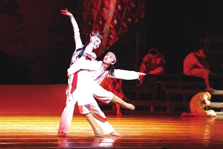 經典舞劇《大夢敦煌》是一部富于傳奇色彩的四幕舞劇,首演至今,已獲得中宣部“五個一工程”獎、中國舞蹈“荷花獎”、中國“文華獎”等多個獎項,被譽為中國原創(chuàng)舞劇中的頂級之作,民族舞劇的經典之作。當晚,集故事美、音效美、舞美美、表演美于一身的《大夢敦煌》,以一場淋漓盡致、亦夢亦幻的完美演出,收獲了現(xiàn)場觀眾經久不息的掌聲。圖為演出現(xiàn)場。