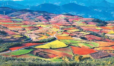 冬日艷陽(yáng)下,云南省昆明市東川區(qū)紅土地鎮(zhèn)獨(dú)特的紅土地景觀,吸引各地游客前來,也帶動(dòng)周圍百姓增收。