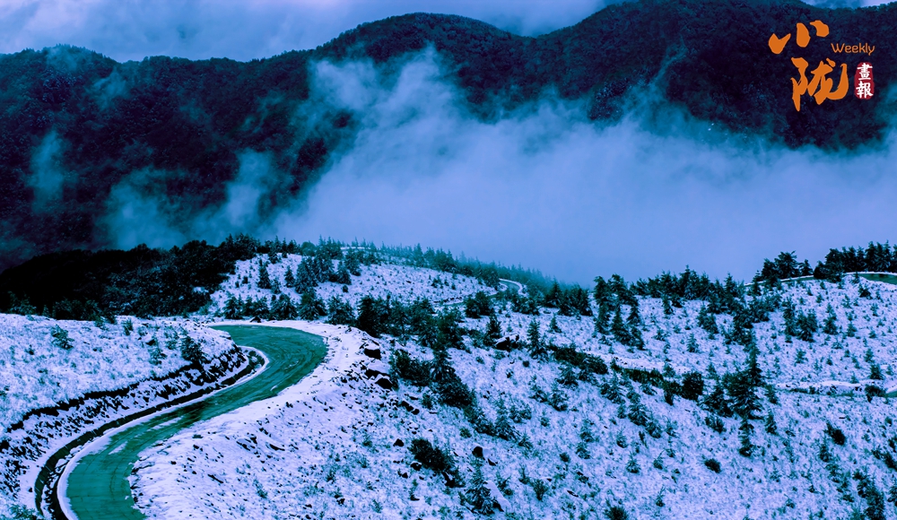 白雪覆蓋的關山,煙雨蒙蒙,云海此起彼伏,山峰時隱時現(xiàn),有著往常完全看不到的景色,云、霧、雪交織的美就在這里。