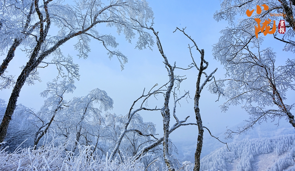 關山被白雪覆蓋,滿山樹木掛滿了晶瑩的雪花,好像穿上了潔白的婚紗,格外美麗。