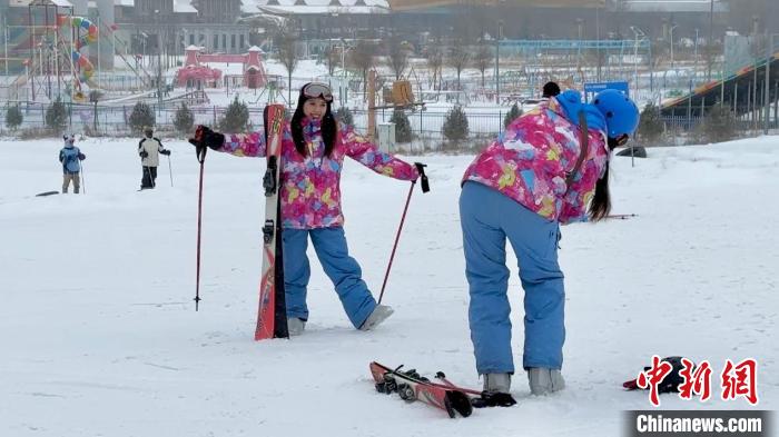 圖為滑雪教練對臺胞青年進(jìn)行首次滑雪前的培訓(xùn)。王牧雨 攝