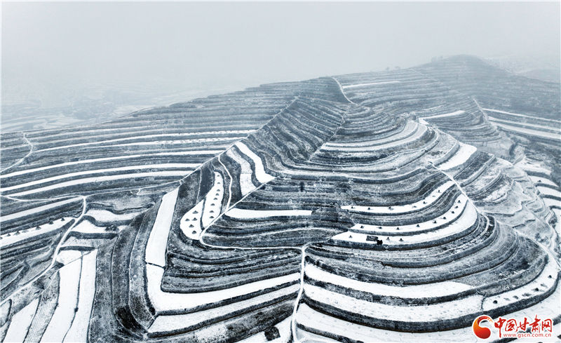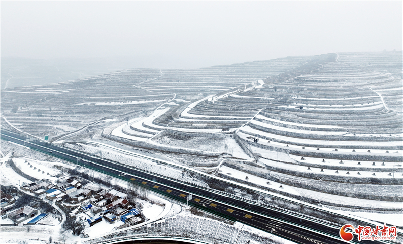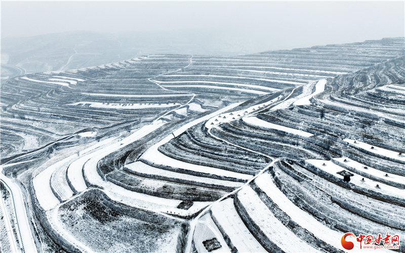 近日,平?jīng)鍪徐o寧縣迎來(lái)降雪天氣,雪后的梯田銀裝素裹,美景如畫。