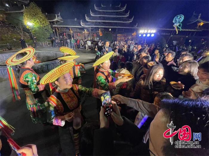 好在天氣給臉,年三十到正月初五,天天陽光明媚,溫暖熙熙,給演唱會(huì)的人氣奠定了很好的基礎(chǔ)。你瞧,穿巖山景區(qū)楓香瑤寨、千里古寨、雁棲山莊、蒲安沖民宿、時(shí)珍園康養(yǎng)上千個(gè)房間都住滿了游客,都連統(tǒng)溪河鎮(zhèn)上的酒店、客棧都是爆棚。從婁底趕來李小苑一家五口和唐詩一家三口,結(jié)伴而來,沒有住處,只好到遠(yuǎn)離景區(qū)15公里的縣城住下,然后去景區(qū)吃晚飯,晚上觀看演出。唐詩對(duì)筆者說,我來過穿巖山,感覺這里的風(fēng)景好看,工作人員也很客氣,有那么多的住宿點(diǎn),我就沒有預(yù)訂。想不到來了之后,全訂完了。