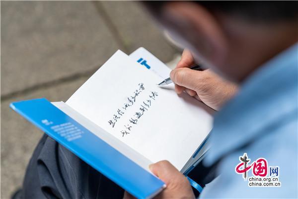 在書院小院里,一位腳穿布鞋,親切隨和,滿臉笑容的男士正在分享,從《趕時間的人》創(chuàng)作心得,到新書《低處飛行》作品朗誦和創(chuàng)作故事點滴,還有撿破爛、送外賣的人生經(jīng)歷,深情的講述,傳遞的是始終不曾改變的對寫詩的執(zhí)著與熱愛。