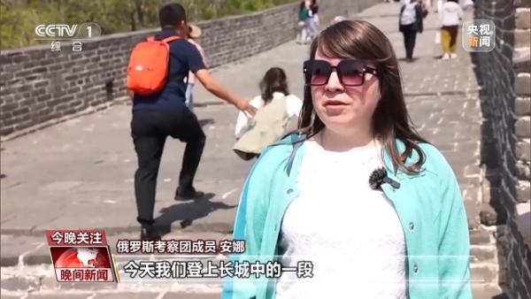俄羅斯考察團(tuán)成員 安娜:今天我們登上長(zhǎng)城中的一段,我的感受非常棒。這段長(zhǎng)城登起來(lái)不算太累,這點(diǎn)很好。