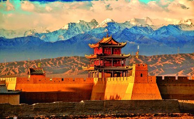 雄關(guān)六百載,長城越千年??唇癯?,戈壁之上,嘉峪關(guān)關(guān)城的朱色城樓與終年皚皚的祁連雪峰交相輝映,歷經(jīng)風(fēng)霜久而彌堅;峭壁之巔,長城第一墩矗立于此,腳下流淌的討賴河水澎湃不息;山脊之上,懸壁長城形似凌空倒掛,氣勢雄偉。