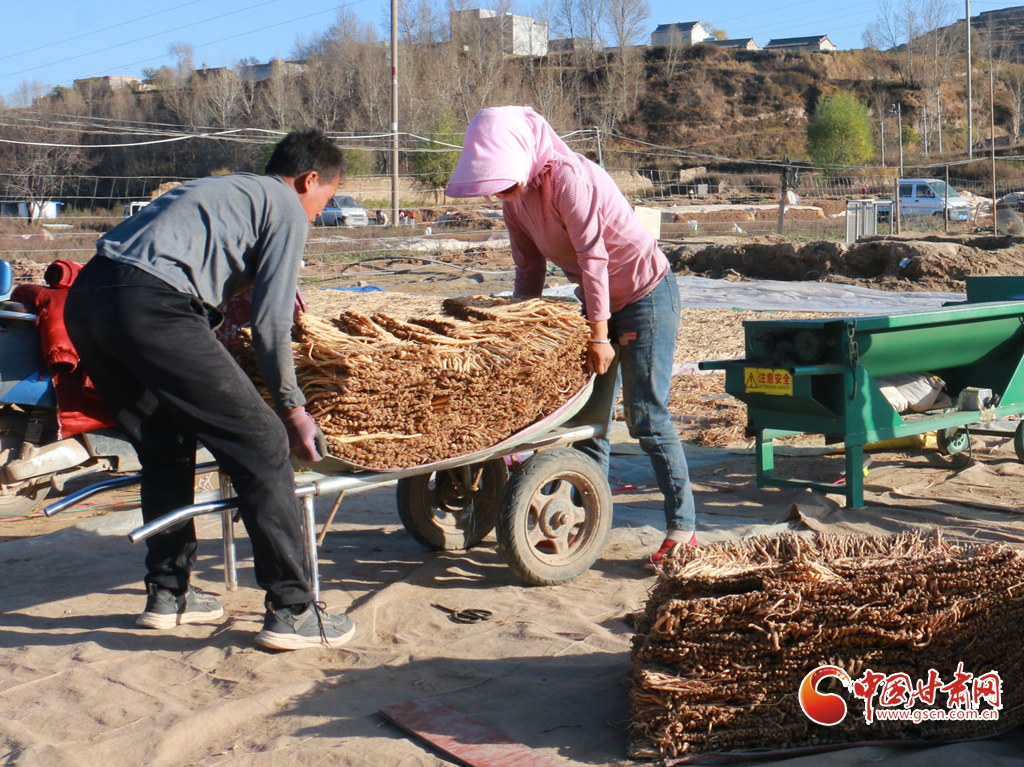 初冬時節(jié),天氣晴好,走進岷縣十里鎮(zhèn),藥香四溢,隨處可見藥農(nóng)利用晴好天氣忙著晾曬中藥材的場景。