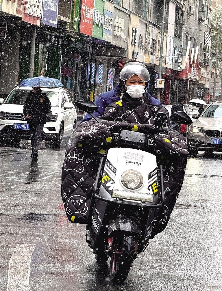 11月24日,一位市民在雪中騎行。蘭州日?qǐng)?bào)社全媒體記者 甘霖 攝