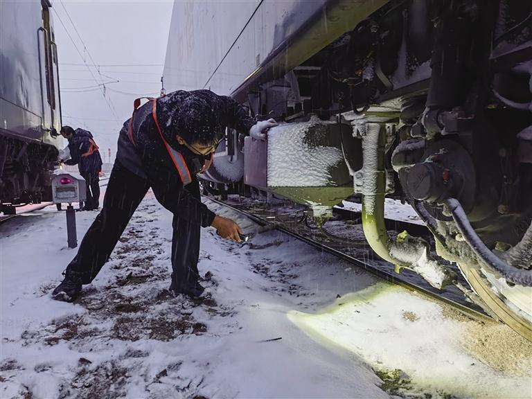 受今年入冬以來最強寒潮、雨雪天氣影響,11月23日20時開始,中國鐵路蘭州局集團有限公司蘭州西機務(wù)段調(diào)車車間擔(dān)當(dāng)管內(nèi)的武威南、打柴溝等地區(qū)氣溫接近零下15℃,蘭新線蘭州北至武威南、蘭青線部分線路已普降中到大雪,調(diào)車車間干部職工以雪為令,精心組織、主動應(yīng)對,采取有力措施最大限度降低不良天氣給行車安全帶來的影響,全力保證疆煤外運人員供應(yīng),確保列車安全暢通。