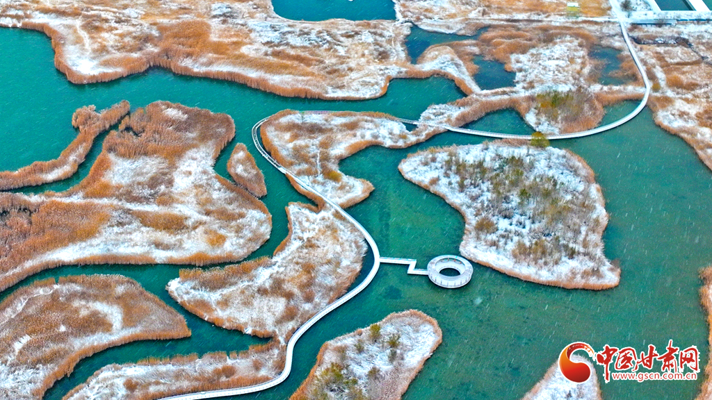 空中俯瞰張掖國家濕地公園,它宛如一幅寧靜的山水畫,湖畔的垂柳和蘆葦仿佛戴上了潔白的雪帽,顯得格外嫵媚;甘州府城中的仿古建筑在雪景的襯托下更顯寧靜與高雅。古城鐘鼓樓、張掖西站和文津公園等景區(qū),無一不被銀裝覆蓋,呈現出一種古樸而典雅的美。