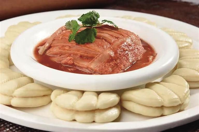“黃河大鯉魚、蘭州糟肉、麻辣肉、老蘭州燴菜這些都是隴菜中的必點(diǎn)菜式!”董巖向記者介紹了店里的招牌菜:黃河宏豐鯉魚王,魚肉質(zhì)鮮嫩細(xì)膩、營養(yǎng)豐富,在隴菜傳統(tǒng)烹飪技法中,紅燒黃河鯉魚堪稱經(jīng)典做法,搭配廚師精致的排盤,色澤紅亮的魚身與青蔥翠綠相互映襯,香氣撲鼻,令人垂涎欲滴。蘭州糟肉在隴菜中是一道極具特色的傳統(tǒng)名菜,每逢佳節(jié),它更是成為蘭州人家餐桌上必不可少的一道佳肴,承載著濃濃的節(jié)日氛圍和家的味道。精選肥瘦相間的五花肉,經(jīng)過刀工、糟鹵腌制、放入蒸鍋中蒸熟等一系列操作,肉質(zhì)變得軟爛,肥而不膩,糟香四溢。當(dāng)入口品嘗時(shí),那濃郁的糟香味瞬間在口中散開,與五花肉的醇厚口感完美搭配,相得益彰,讓人回味無窮。
