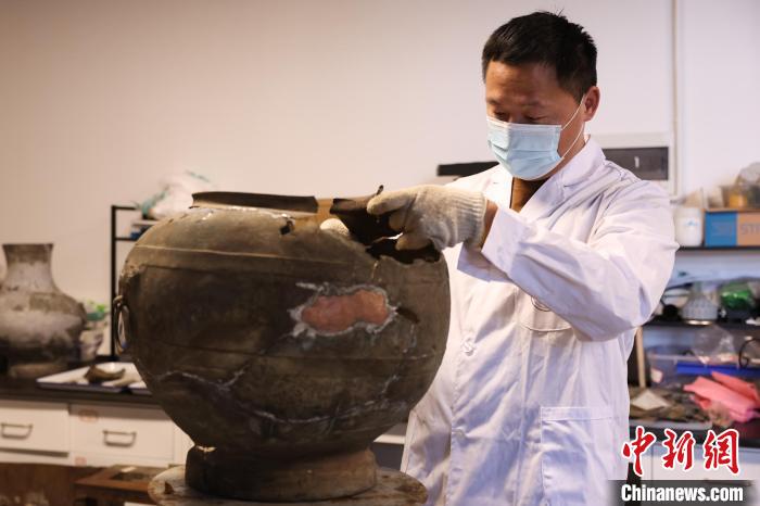 “青銅器和簡牘不一樣,它需要相對干燥的環(huán)境來保存,由于墓室坍塌,很多出土的青銅器因受擠壓破碎、變形,還有很多銹跡和污物已經(jīng)掩蓋了該件器物的原本樣貌。”趙明輝表示,修補青銅器需要將一塊塊碎片進行分類、比對、拼接等,如有變形還需先整形,隨后將其焊接,是一件不折不扣的“精細活”。