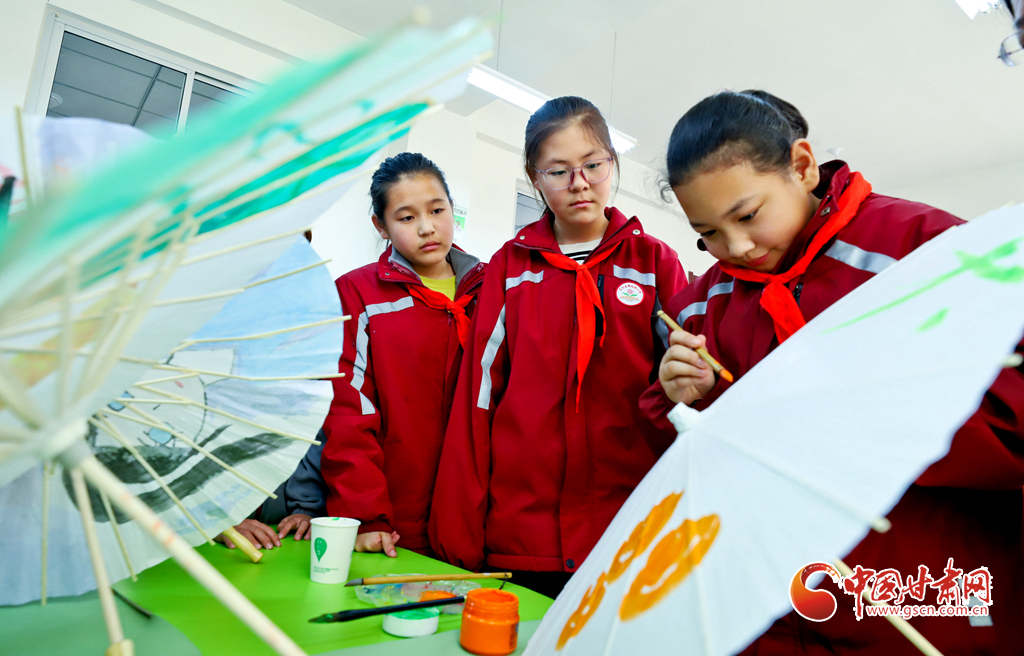 12月4日,張掖市高臺縣非遺保護中心的老師們來到解放街小學,向1800多名孩子們傳授戲曲表演、剪紙、古箏演奏等“非遺”技藝,讓更多師生了解、學習非遺。