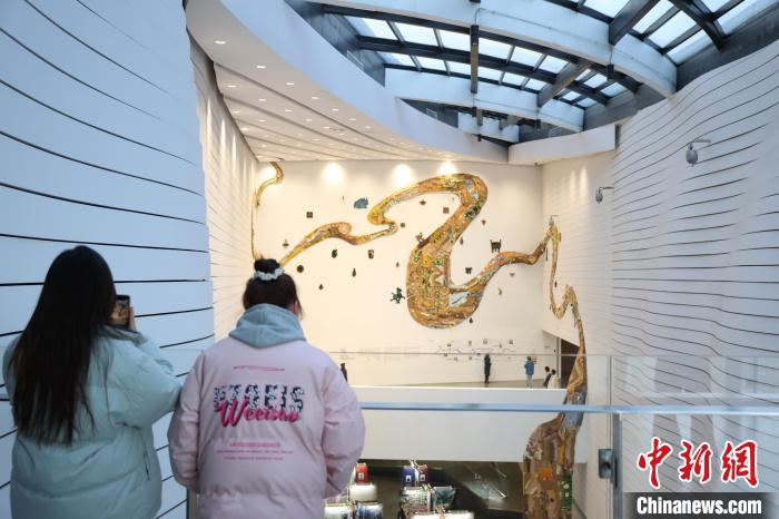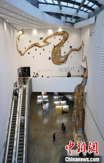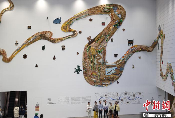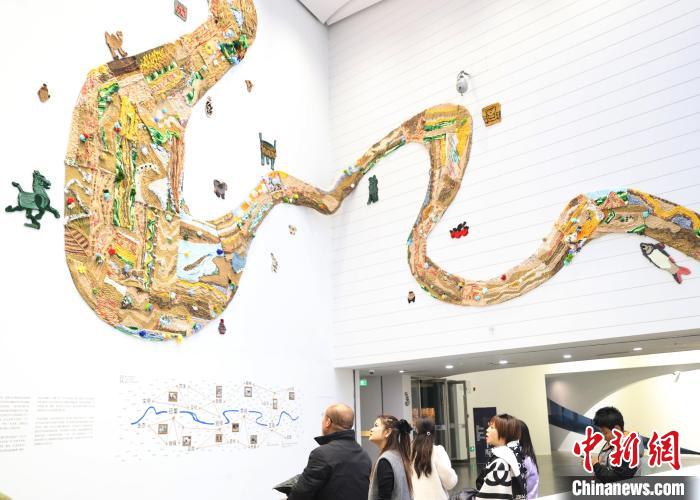 12月8日,市民在寧夏銀川當(dāng)代美術(shù)館欣賞“奔流的舞姿:藝起織造母親河”藝術(shù)展。當(dāng)日,“奔流的舞姿:藝起織造母親河”公益項(xiàng)目藝術(shù)展在銀川當(dāng)代美術(shù)館正式對公眾開放。該項(xiàng)目匯聚了黃河兩岸200余位織手的巧作,按照黃河特點(diǎn)和視覺審美拼接和織造,織造出一個(gè)極具視覺效果的“大河”,通過藝術(shù)的橋梁,展示奔涌黃河的優(yōu)美舞姿和不息精神,同時(shí)激發(fā)社會各界對黃河生態(tài)保護(hù)的共識與行動。中新社記者 于晶 攝