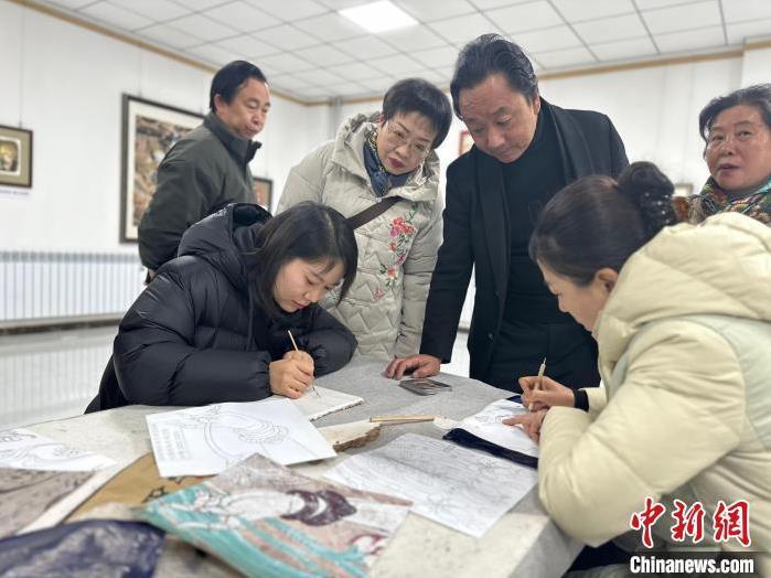 12月17日,由蘭州市七里河區(qū)委宣傳部、七里河區(qū)文體旅局聯(lián)合舉辦的“大漠孤陽(yáng)映彩霞 敦煌神韻美如畫(huà)”新時(shí)代文明實(shí)踐主題活動(dòng)暨敦煌巖彩畫(huà)書(shū)畫(huà)藝術(shù)展拉開(kāi)帷幕。圖為繪畫(huà)愛(ài)好者現(xiàn)場(chǎng)學(xué)習(xí)繪制巖彩畫(huà)。楊娜 攝
