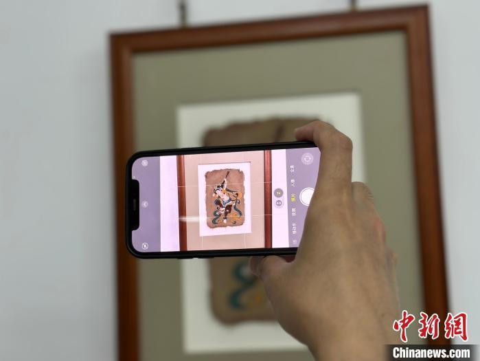 12月17日,由蘭州市七里河區(qū)委宣傳部、七里河區(qū)文體旅局聯(lián)合舉辦的“大漠孤陽(yáng)映彩霞 敦煌神韻美如畫(huà)”新時(shí)代文明實(shí)踐主題活動(dòng)暨敦煌巖彩畫(huà)書(shū)畫(huà)藝術(shù)展拉開(kāi)帷幕。圖為參觀(guān)者拍攝展出的“反彈琵琶”題材巖彩畫(huà)。楊娜 攝
