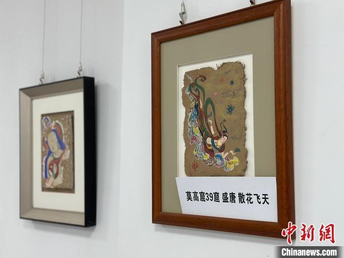 12月17日,由蘭州市七里河區(qū)委宣傳部、七里河區(qū)文體旅局聯(lián)合舉辦的“大漠孤陽(yáng)映彩霞 敦煌神韻美如畫(huà)”新時(shí)代文明實(shí)踐主題活動(dòng)暨敦煌巖彩畫(huà)書(shū)畫(huà)藝術(shù)展拉開(kāi)帷幕。圖為展出的巖彩畫(huà)。楊娜 攝