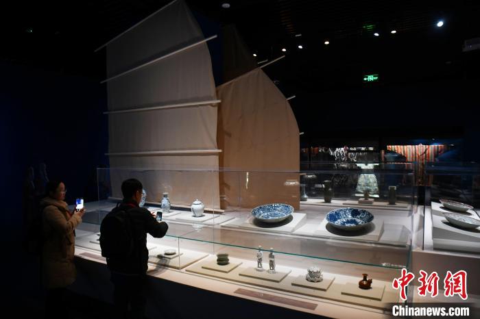 12月21日,“傳奇之旅:馬可·波羅與絲綢之路上的世界”展覽在四川博物院正式面向公眾開放。圖為觀眾參觀現(xiàn)場展出的中國元代青花瓷系列展品。 中新社記者 張浪 攝