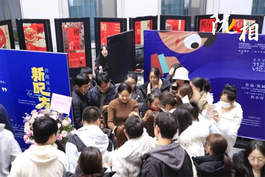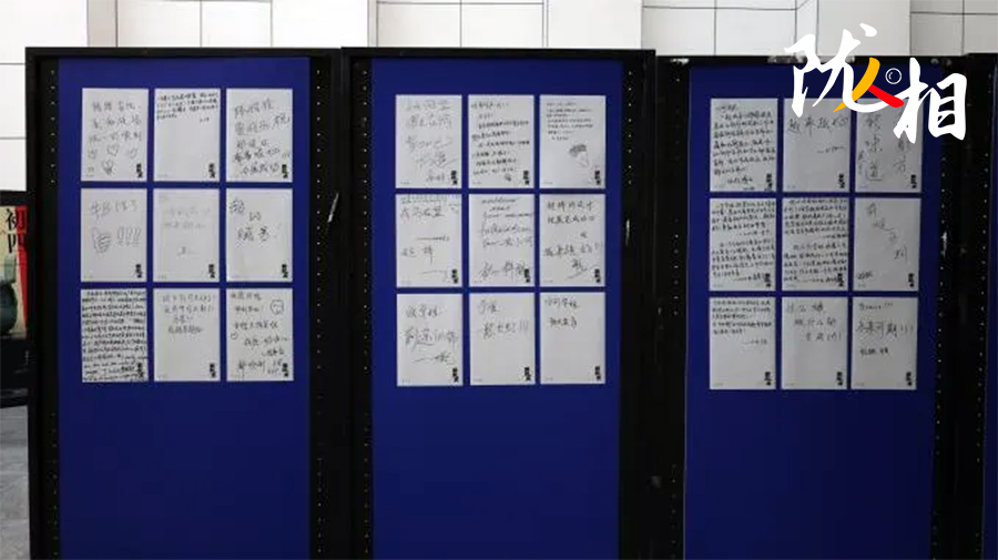 整體被搭建成“S”形的展區(qū),借鑒了博物館的陳展布局,讓參觀者不必走回頭路;展區(qū)第二部分陳列著各種文創(chuàng)玩偶的展臺赫然入目,讓人驚喜連連;展區(qū)外圍的留言墻,不僅有備好的A4紙,還貼心地粘上了馬克筆,方便觀眾留言……來參觀的人,即便對藝術(shù)不敏感也能被設(shè)計(jì)者的細(xì)心和創(chuàng)意輕松打動(dòng)。