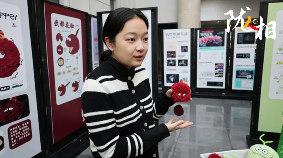 不僅是展區(qū)布置,黃小可的作品處處體現(xiàn)出令人耳目一新的細(xì)節(jié)。“我在設(shè)計(jì)它時(shí)想到了通感的表現(xiàn)手法,將花椒‘麻’的特點(diǎn)用觸覺來實(shí)現(xiàn)。”