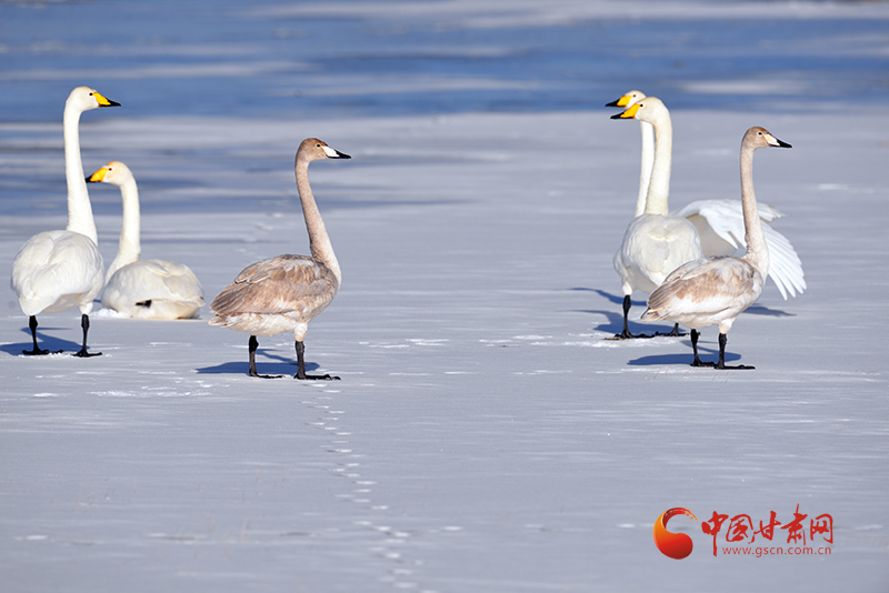 中國甘肅網(wǎng)2月7日訊(西北角·中國甘肅網(wǎng)記者 張慧雅 通訊員 何文麗 王建忠)近日,甘肅敦煌陽關(guān)國家級(jí)自然保護(hù)區(qū)管護(hù)中心工作人員通過視頻巡查,監(jiān)測到了11只越冬的國家二級(jí)保護(hù)野生動(dòng)物——大天鵝。它們或在雪地里漫步,或梳理羽毛,姿態(tài)優(yōu)雅,為寒冷的冬日增添了一抹靈動(dòng)的色彩。