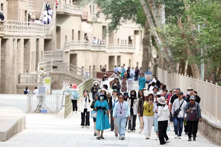 2024年6月7日,游客在莫高窟參觀游覽。新華社記者 郎兵兵 攝