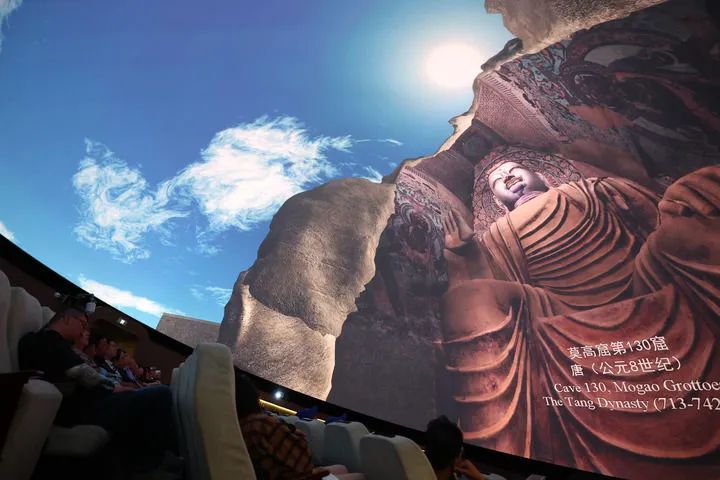 2024年9月4日,游客在莫高窟數(shù)字展示中心觀看球幕電影《夢幻佛宮》。新華社記者 陳斌 攝