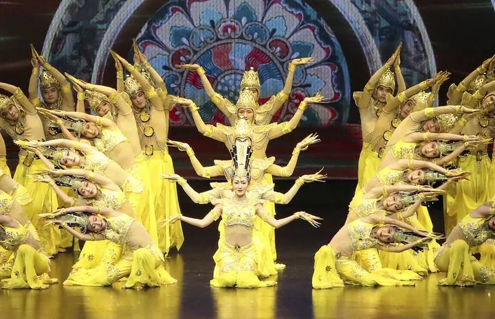 2024年9月20日,演員在第七屆絲綢之路(敦煌)國際文化博覽會舉行期間表演大型情景音畫劇《千手千眼》。新華社記者 郎兵兵 攝