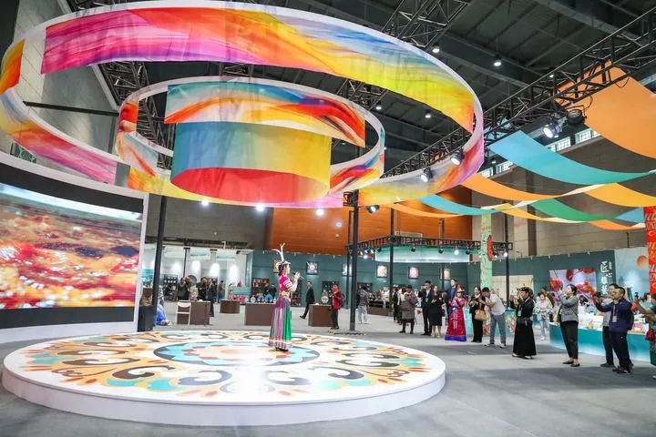 2024年9月21日,與會嘉賓在第七屆絲綢之路(敦煌)國際文化博覽會上參觀。新華社記者 郎兵兵 攝