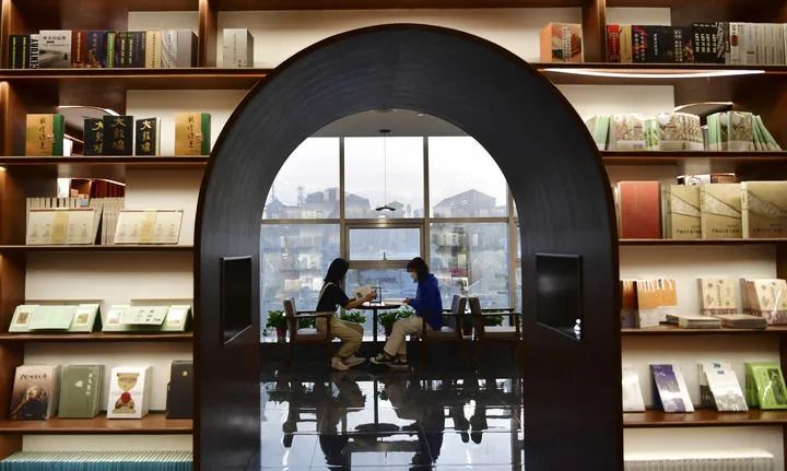 2022年4月21日,讀者在敦煌書局閱讀區(qū)看書。新華社記者 陳斌 攝