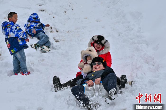 3月2日,云南省迪慶藏族自治州香格里拉市迎降雪天氣,市民自制雪板樂(lè)享雪趣。李嘉嫻 攝