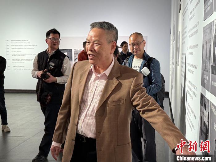 梁江向觀展者介紹作品故事。方偉彬 攝