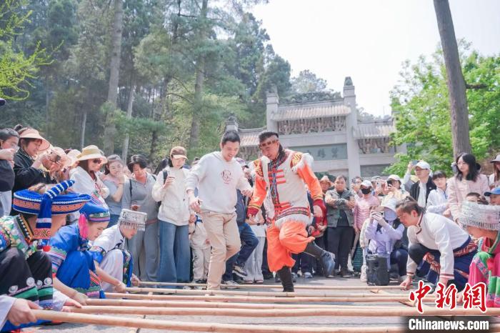 3月30日,市民和游客在活動(dòng)現(xiàn)場(chǎng)跳竹竿舞?!≈鬓k方 供圖