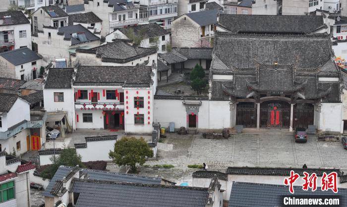 圖為3月30日航拍村中保存完好的古民居。(無(wú)人機(jī)照片)中新社記者 韓蘇原 攝