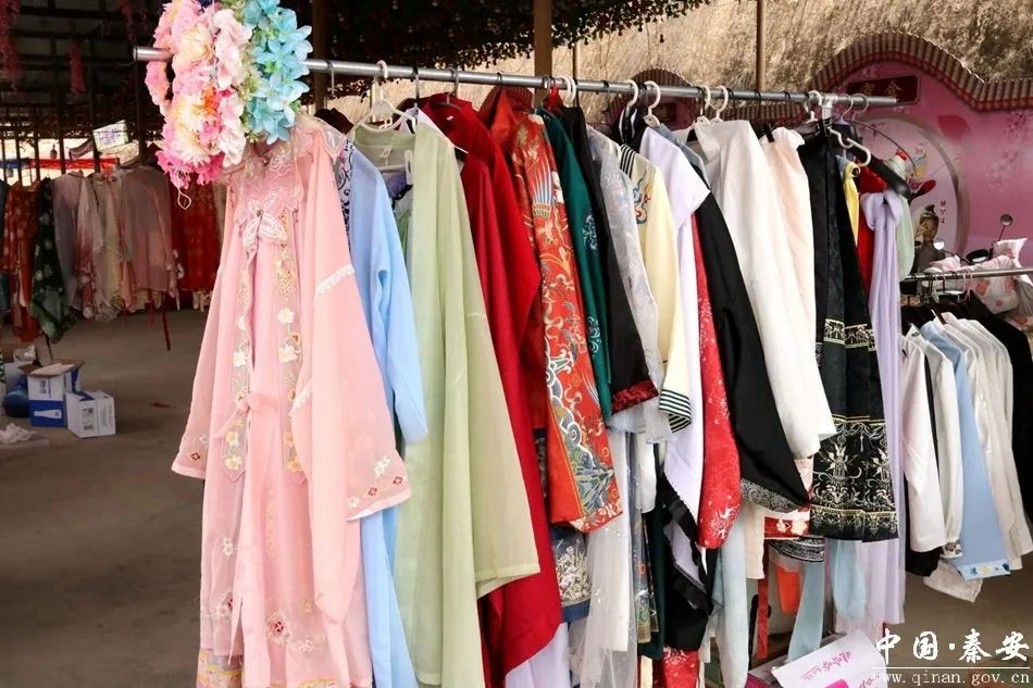 在漢服體驗(yàn)區(qū),游客們穿上精美的漢服,或手持團(tuán)扇,或腰掛香囊,在古桃花林間拍照留念,仿佛穿越回了古代。攤主胡惠告訴記者:“我覺(jué)得桃花會(huì)這樣的活動(dòng)非常適合推廣漢服文化,我們這里有各種不同款式的漢服,從唐代的齊胸襦裙到宋代的褙子,再到明代的馬面裙,應(yīng)有盡有。而且每套漢服都經(jīng)過(guò)精心挑選,面料舒適,做工精細(xì)。除了漢服,我們還提供頭飾、發(fā)簪、團(tuán)扇等配飾,讓游客可以全方位感受漢服的魅力。”