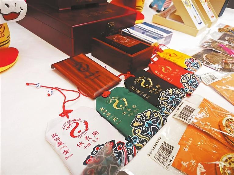 天水伏羲廟的文創(chuàng)產(chǎn)品河洛掛牌也很受歡迎。“掛牌是用天水伏羲廟的側柏制作的,掛牌正面是太極八卦圖,背面是河圖洛書,側面是北斗七星,十分精美,寓意美好。”天水市博物館文化產(chǎn)業(yè)部工作人員楊萱慧說,“我們還特意為掛牌制作了5種顏色的收納包,分別代表‘金、木、水、火、土’,大家可以按自己喜好選購收納包來收納河洛掛牌。”