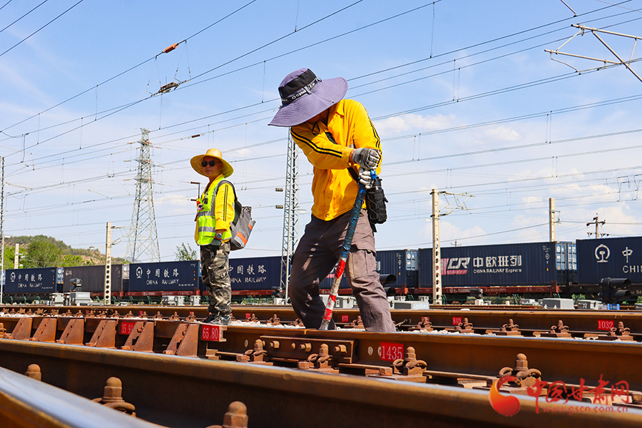 此刻,編組站內(nèi)一輛輛滿(mǎn)載貨物的中歐班列鳴笛啟程,呼嘯而過(guò),駛向祖國(guó)的四面八方。正是有了無(wú)數(shù)像這樣高溫下堅(jiān)守的鐵路人,才筑起了鐵路運(yùn)輸安全的堅(jiān)固屏障,用汗水澆灌著運(yùn)輸安全,讓鋼鐵巨龍?jiān)?ldquo;絲路驛站”上始終昂首前行。