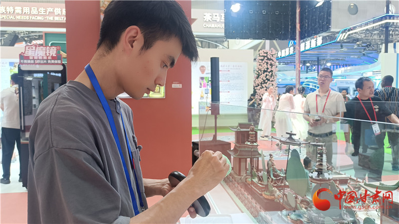 自面塑《觀(guān)無(wú)量壽經(jīng)變》完美呈現(xiàn)以來(lái),楊凱帶著作品先后參加了敦煌文博會(huì)、深圳文博會(huì),這次又以C位出道參加蘭洽會(huì)。