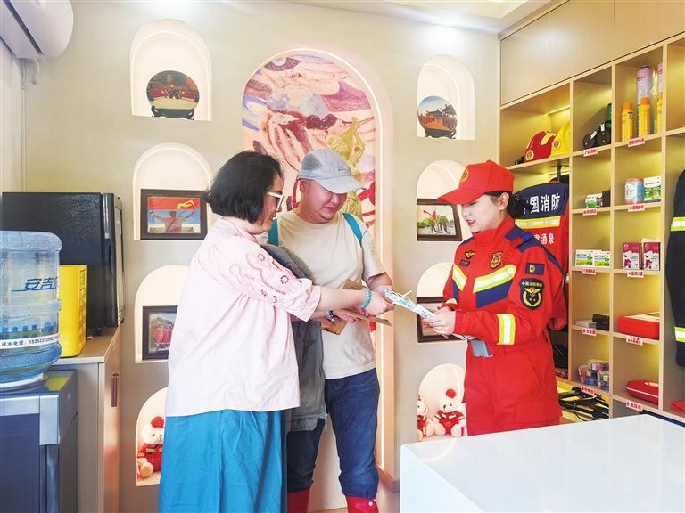 敦煌市消防救援大隊“九色鹿”女子服務(wù)隊在景區(qū)開展消防安全動態(tài)巡查。