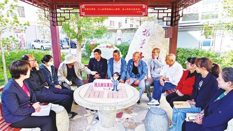 嘉峪關市雄關街道鐵南社區(qū)“鐵大叔議事站”開展協(xié)商議事活動。